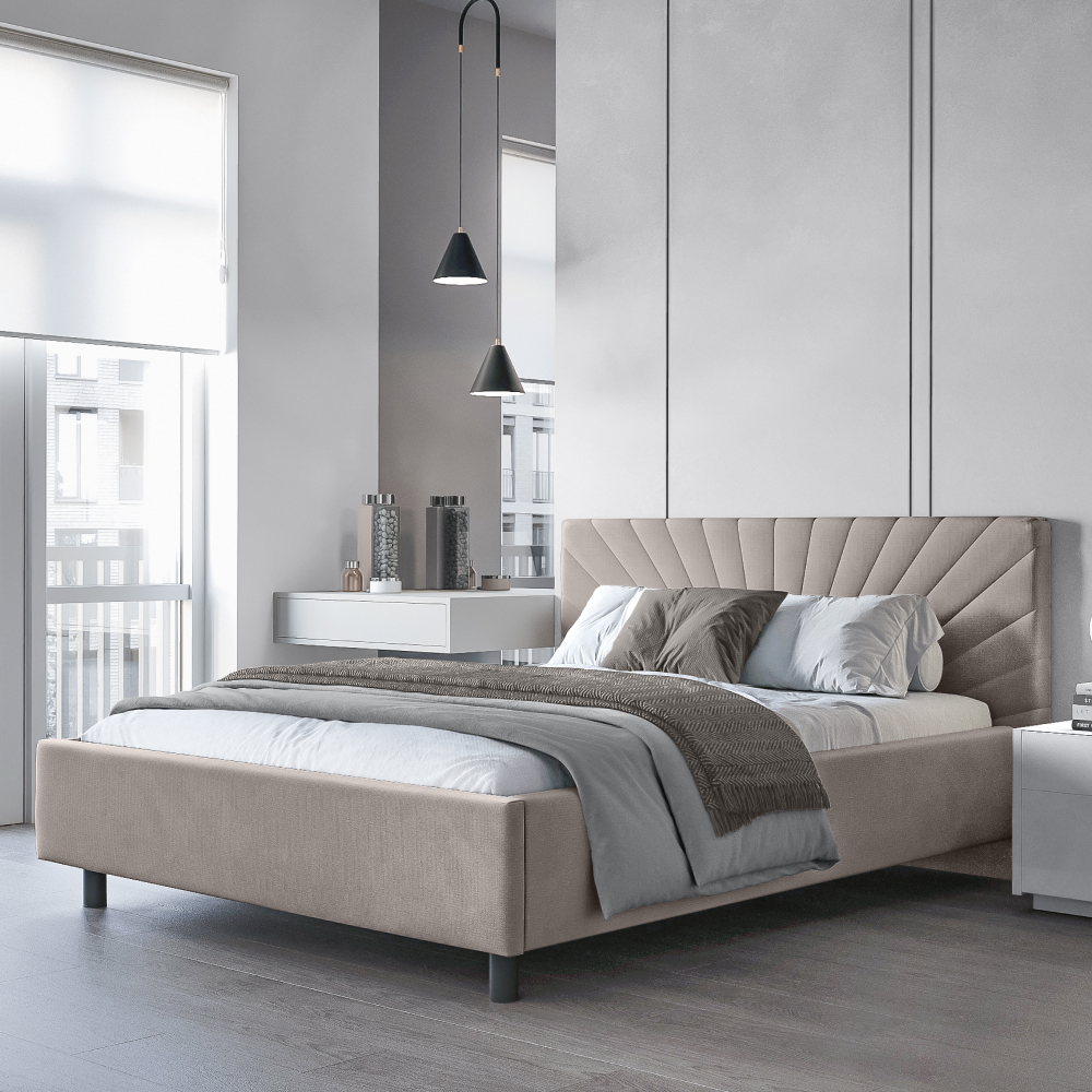 Кровать «Miranda» в минималистичном стиле принесет комфорт и уют в спальную зону. Деликатная строчка на изголовье в форме исходящих лучей смотрится лаконично и стильно.